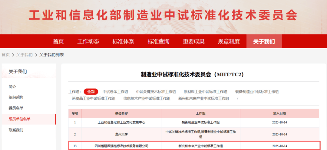 立异建立链条企业+尺度系统+跨境资本三位一体办事模式,环绕“手艺立异→尺度建立→检测认证→品牌增值→市场拓展→财产升级”价值链,出力鞭策中国尺度正在智能制制、新兴手艺、数字经济、低碳能源等前沿范畴的国际化历程。工业和消息化部制制业中试尺度化手艺委员会(MIT/TC2)工做组单元,积极鞭策国度高质量成长,目前培育了100余项尺度: